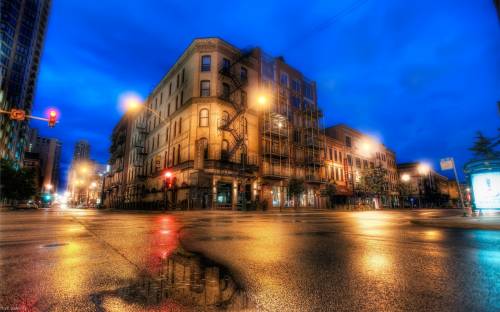 Скачать hd картинку Дорога, асфальт, лужи и огни картинка в высоком качестве для фона своего