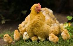 Курица, цыплята, лето, семья