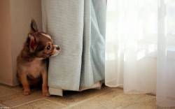 Щенок за шторой, собака