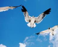 Небо, птицы, облака, крылья, голубой