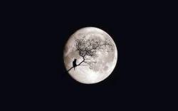 Кот, луна, дерево, ночь