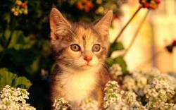 Котенок греется под вечерним солнцем