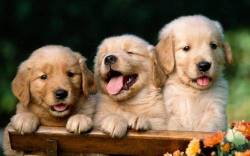 Собаки, три щенка, светлая шерсть
