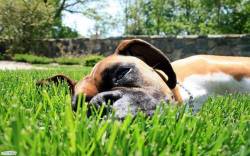 Собака, лежит, трава