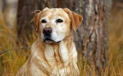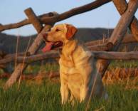 Пес, собака, поле, забор, трава, взгляд
