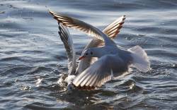 Чайки, море, погружение, охота, добыча