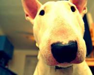 Бультерьер, взгляд, комната