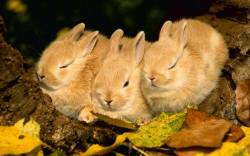 Кролики, животные, листва, осень