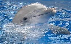 Дельфин, серый, вода, голубая
