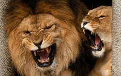 Лев, львица, клыки