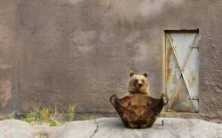 Стена, дверь, медведь, лапы, поза