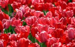 Отцветающие тюльпаны на городской клумбе