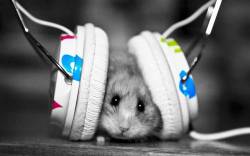 Мышь, наушники, слушает