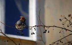 Свиристель, на ветке, с ягодами