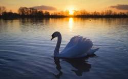 Белый лебедь на пруду