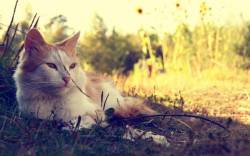 Кошка, трава, взгляд