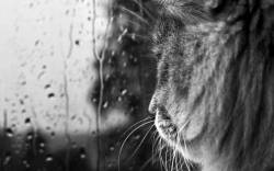 Кошка, кот, дождь, стекло, окно, капли