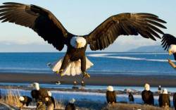 Птицы, орел, море, посадка, крылья