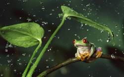 лягушка, капли, вода, листья, стебли, брызги