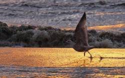 Птица, море, волна, природа, закат