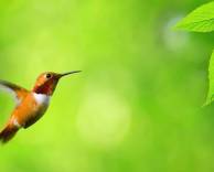Колибри, листок, зелень, полет