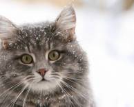 Кошка, снежинки, зима