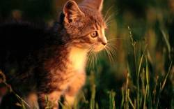 Кошка в траве на охоте