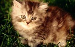 Серый котенок, пушистый, полосатый