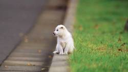 Собака, пес, белый, одиночество, трава