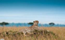 Леопард, дикий, кошка, трава, небо, лежит, хищник