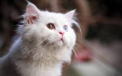 Пушистый, белый, глаза, взгляд, кот