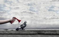 Голубь, небо, облака, рука, парапет