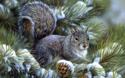 Арт, белка, сосна, зима