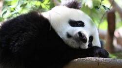 Панда, грусть, печаль, мило, ветка, листочки