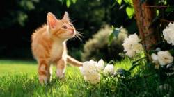 Рыжий котяра, травка, цветы