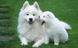 Собаки, щенок, мать, детёныш, трава, газон, белые