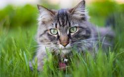 Кот, трава, крупный план