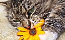 Серый кот и желтый цветочек