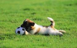 Собака, трава, мяч
