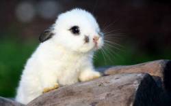 Белый кролик на бревнах