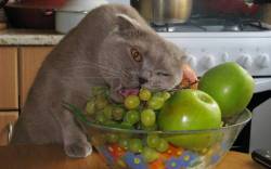 Кот, наглый, кухня, фрукты