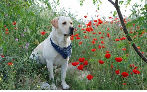 Скачать hd картинку Пёс среди маков картинка в высоком качестве для фона своего